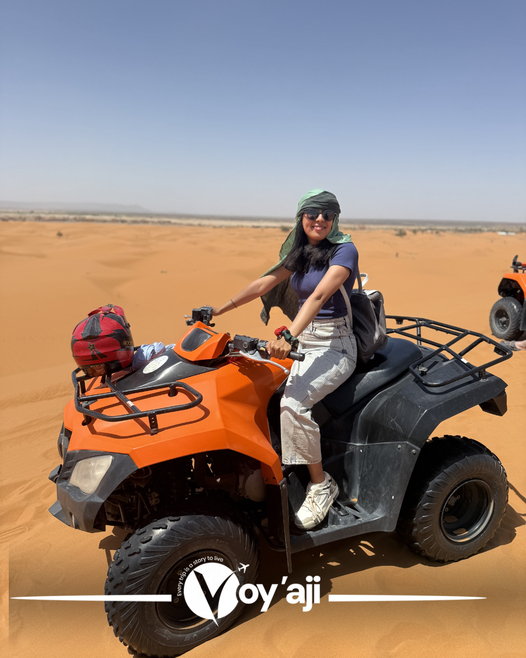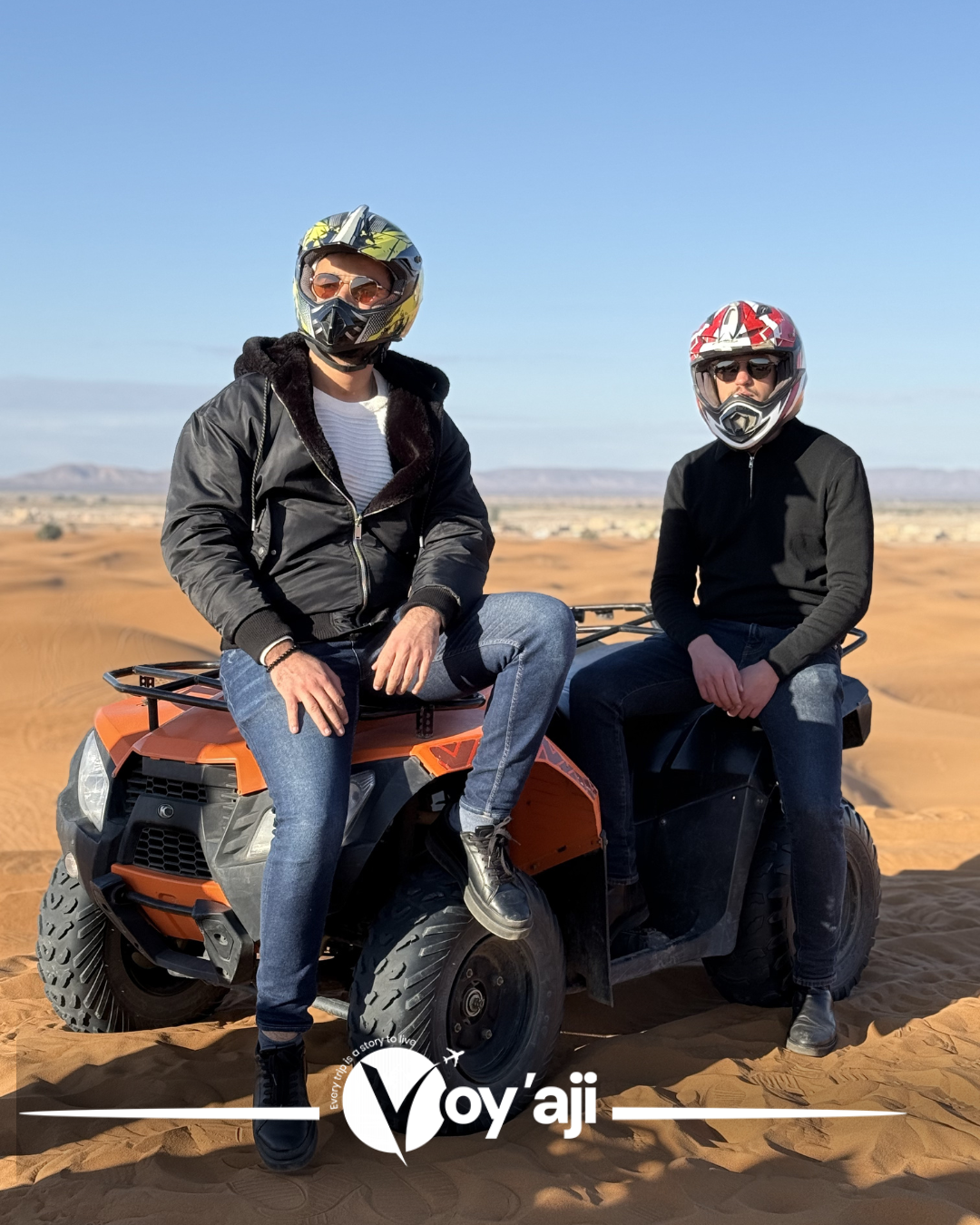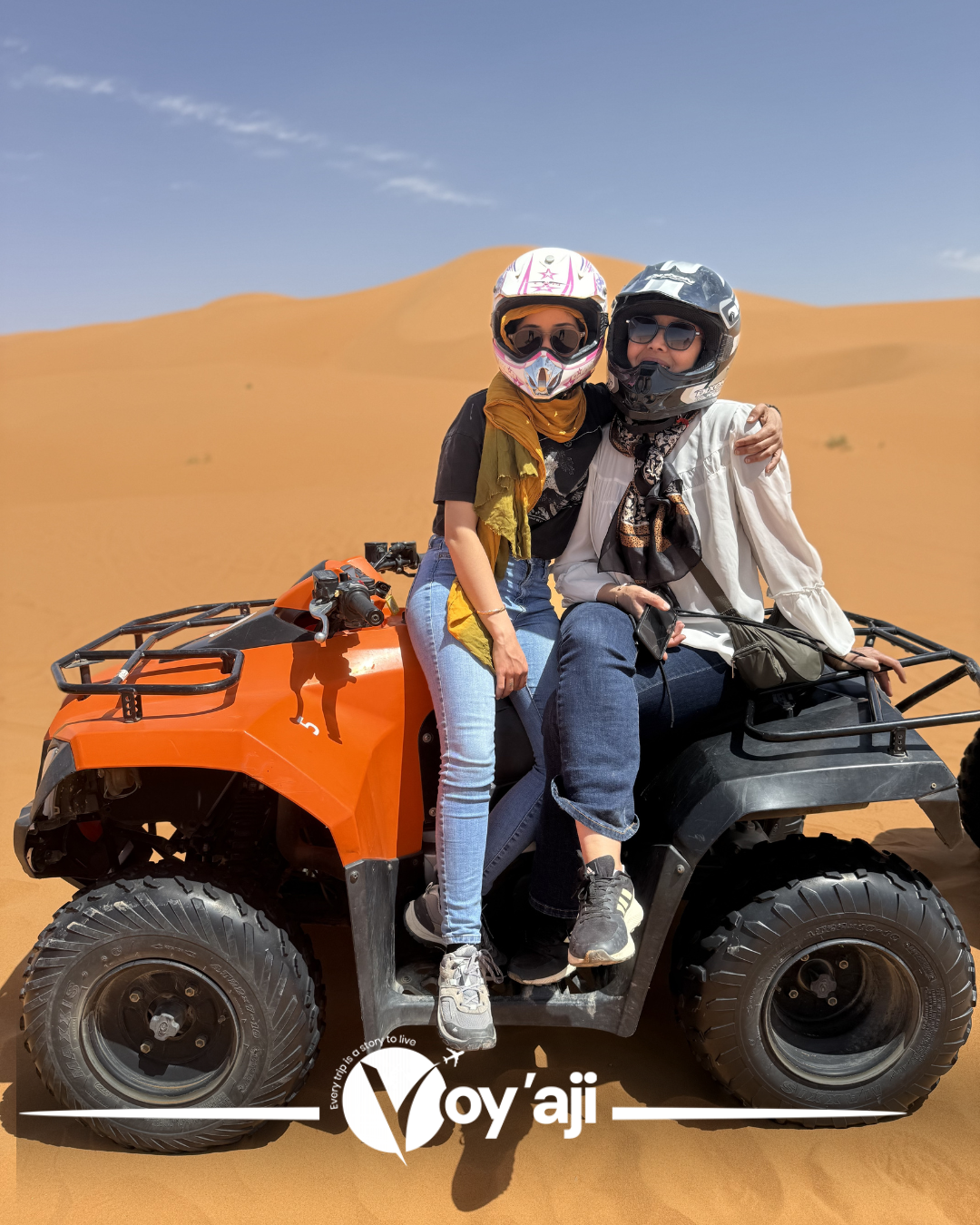 * 🏍️ Expérience quad dans les dunes pour vivre l’adrénaline du Sahara (option).